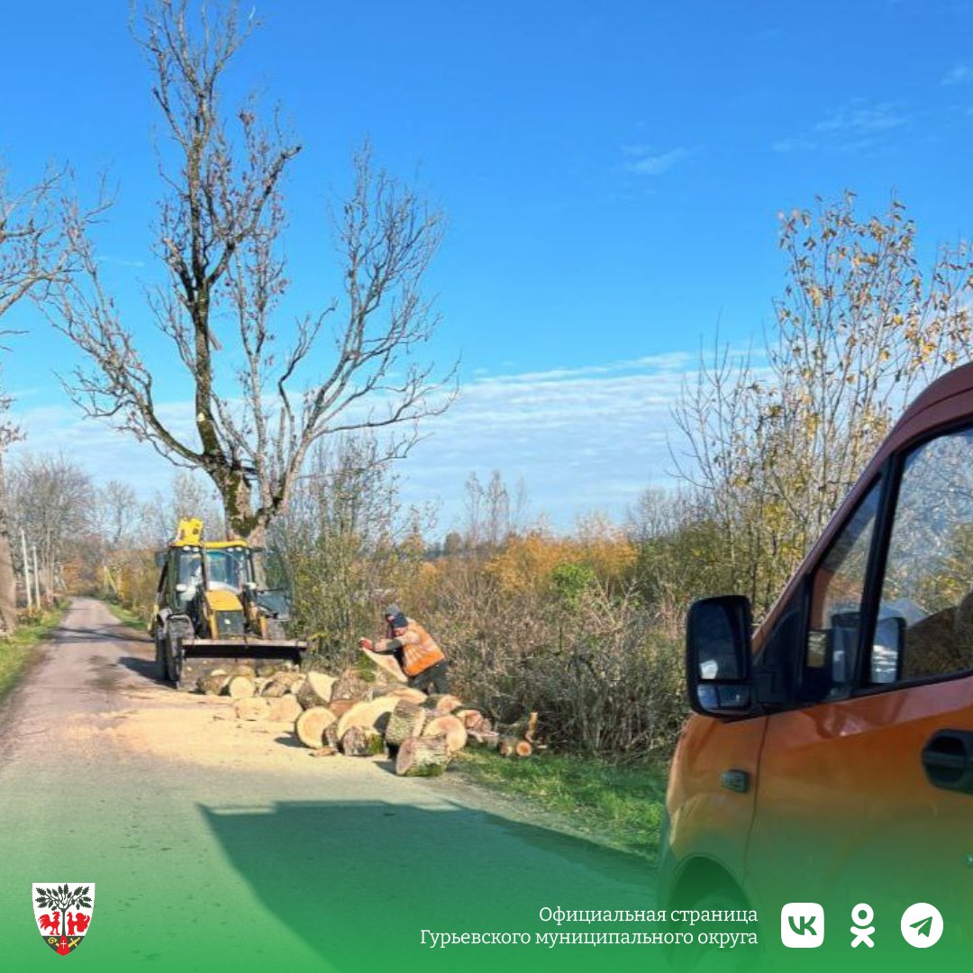 В Гурьевском округе, на территории муниципального казённого учреждения «Низовское», рядом с посёлком Славянское, специалисты управления дорожного хозяйства Калининградской области выполнили санитарный спил деревьев, представлявших потенциальную опасность для участников дорожного движения.